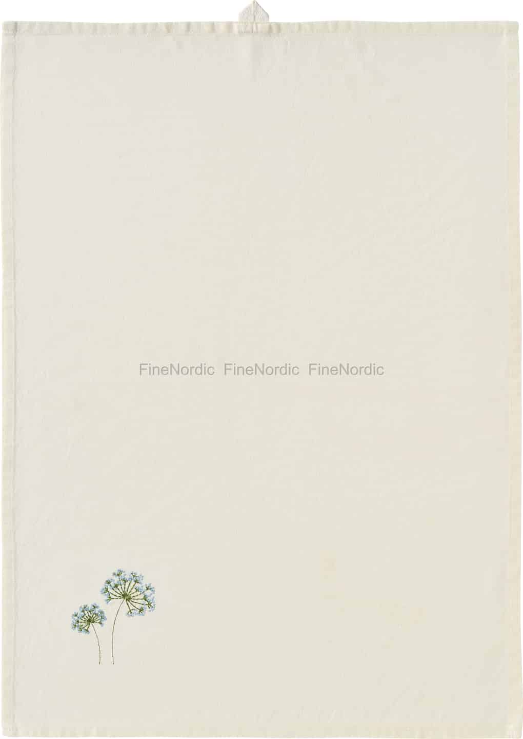 Introduser et streif av stille skjønnhet i dine daglige kjøkkenritualer med Flora-kjøkkenhåndkleet. Den myke, smørkremfargede bomullen er prydet med et delikat broderi av en vill skjermblomst, et varsomt nikk til skandinaviske sommerenger.
