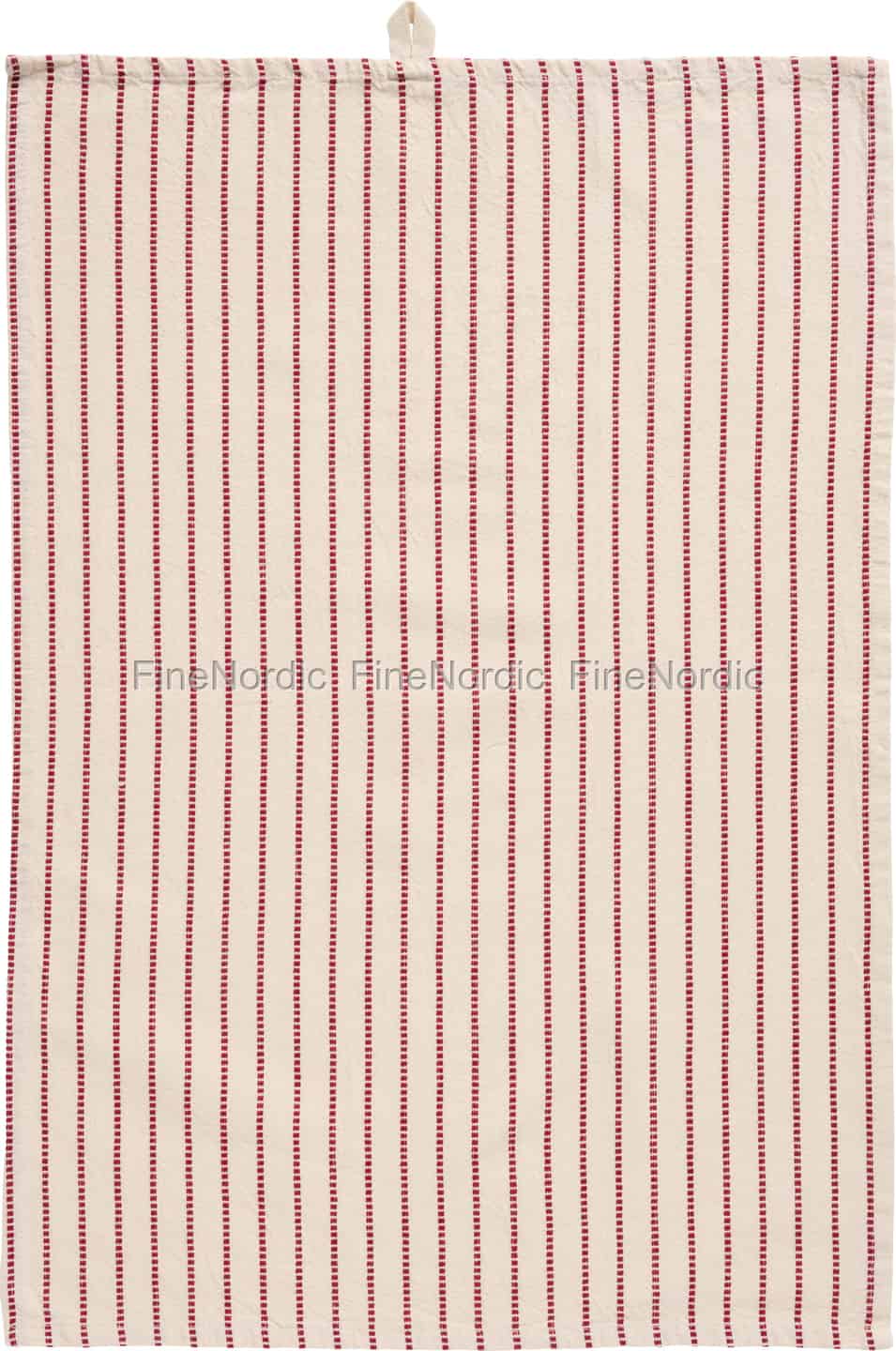 Ib Laursen Kjøkkenhåndkle - "Holly" - Natur - Røde vevde striper