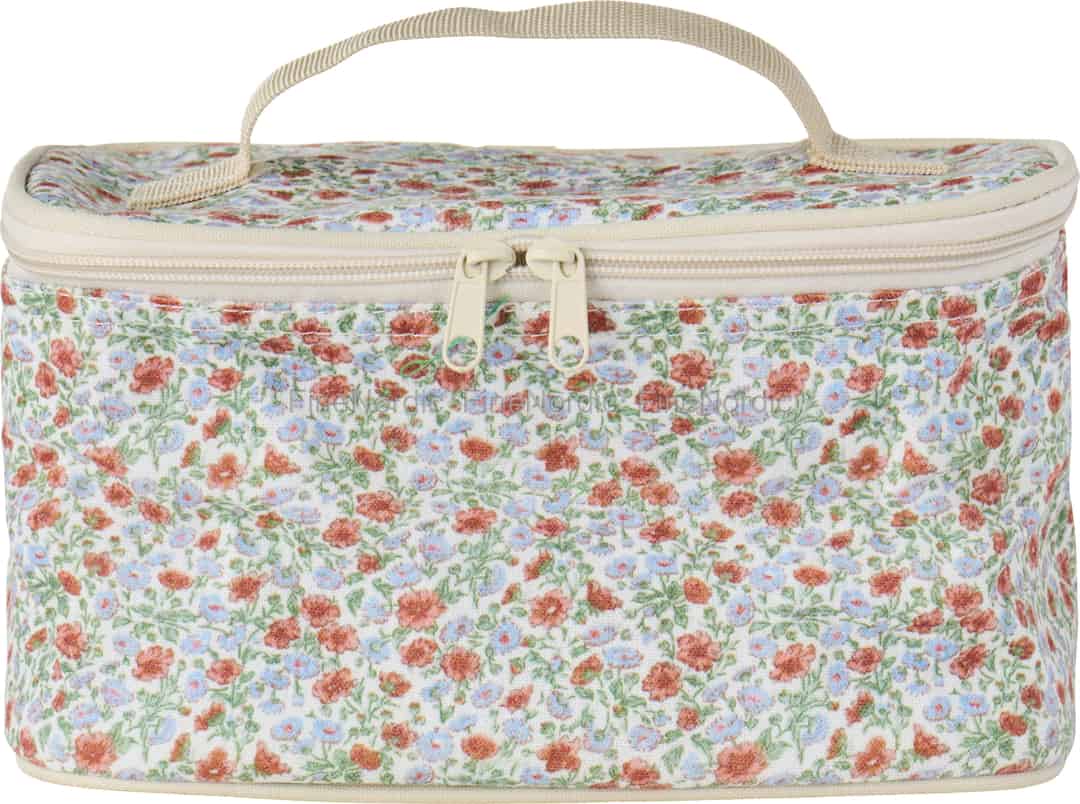Inspirert av blomsterenger og late ettermiddager, er denne kjølevesken fra Ib Laursen mer enn bare et praktisk tilbehør; den er en invitasjon til å senke tempoet og nyte øyeblikket. Det delikate mønsteret, med sine spredte støvrøde og lyseblå blomster, vekker en følelse av nostalgi og landlig sjarm. Hver detalj, fra det myke bomullsstoffet til den enkle kremfargede glidelåsen, er nøye gjennomtenkt for å tilføre en diskré skjønnhet til hverdagen eller spesielle utflukter.