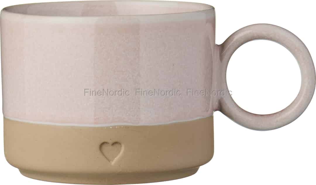 Se for deg at du varmer hendene rundt dette vakkert utformede kruset en stille morgen. Den unike tofargede finishen, som kombinerer en myk, lyserosa glasur med jordnær, matt leire, gir en herlig taktil opplevelse med hver eneste kopp.