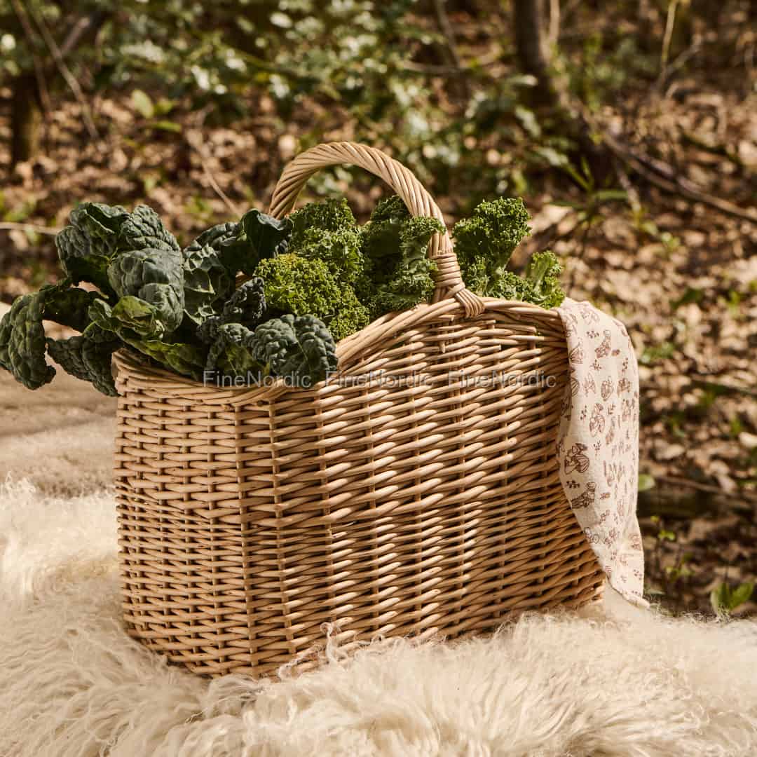 Omfavn den enkle gleden ved å samle og sanke med denne utsøkte pilekurven fra Ib Laursen. Hver flettede tråd forteller en historie om tradisjonelt håndverk, og skaper et produkt som føles både ærlig og tidløst. De varme, naturlige tonene og den solide konstruksjonen fremkaller bilder av solfylte frukthager og livlige bondens markeder. Enten du plukker markblomster på en landlig spasertur eller høster urter fra hagen din, bringer denne kurven et autentisk preg av den skandinaviske landsbygda inn i livet ditt.