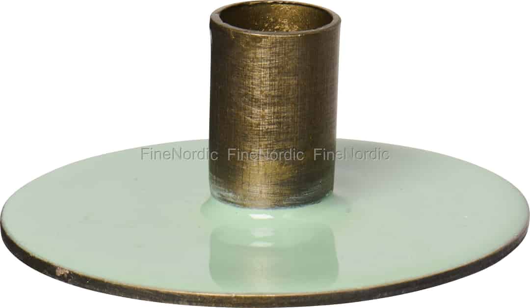 Inviter et mykt skjær inn i hjemmet ditt med denne sjarmerende lille lysestaken fra Ib Laursen. Den blanke, lysegrønne basen og den varme, børstede metallholderen skaper en vakker kontrast, klar til å holde et enkelt, slankt lys for et øyeblikk med stille ettertanke.
