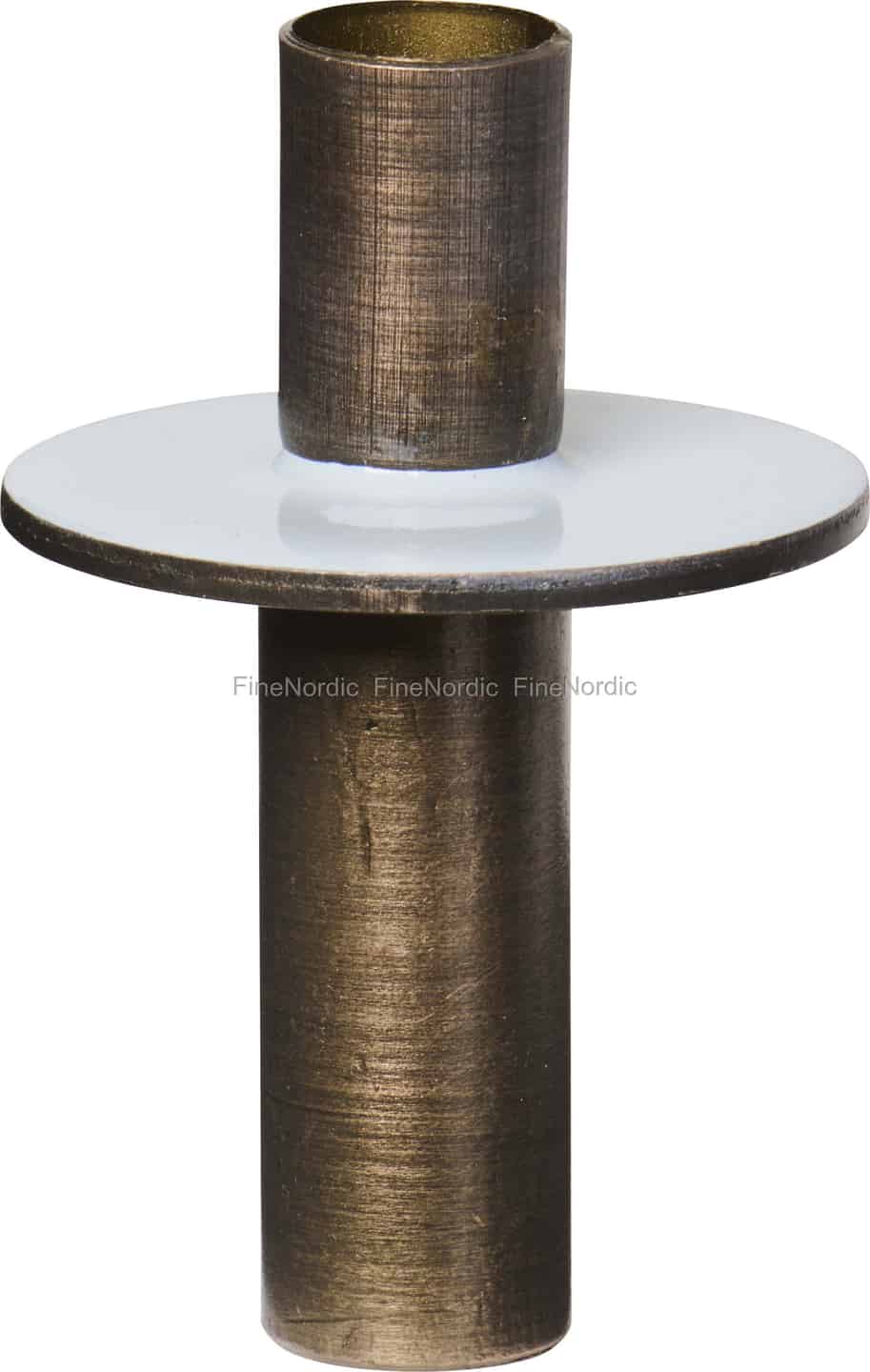 Oppdag den enkle gleden ved forvandling med denne smarte lysestaken fra Ib Laursen. Det er en gjenstand som finner skjønnhet i det oversette, designet for å gjøre en tom vin- eller pynteflaske om til en sjarmerende lysestake på et øyeblikk. Den antikke, børstede metallfinishen har en fantastisk, slitt karakter som føles autentisk og jordnær, og bringer et snev av rustikk nordisk design til ethvert hjørne av hjemmet ditt. Basen sitter trygt i flaskehalsen og gir et solid fundament for en vakker utstilling.