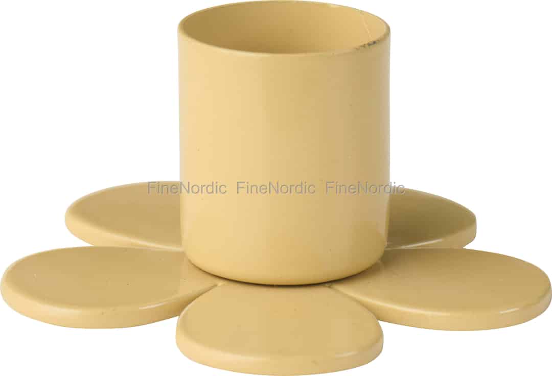 Omfavn den diskré skjønnheten i skandinavisk design med denne herlige lysestaken fra Ib Laursen. Designet er vakkert og enkelt: en solid metallform med en fot som blomstrer ut i en søt, fembladet blomst. Hele staken er kledd i en varm 'Cafe Cream'-nyanse, en farge som minner om din favoritt-latte om morgenen, noe som gir den en lun og hjemmekoselig følelse. Den satinmatte overflaten fanger flammens flakking med et mykt, mildt skjær, og forvandler ethvert hjørne av hjemmet ditt til et fristed for ro.