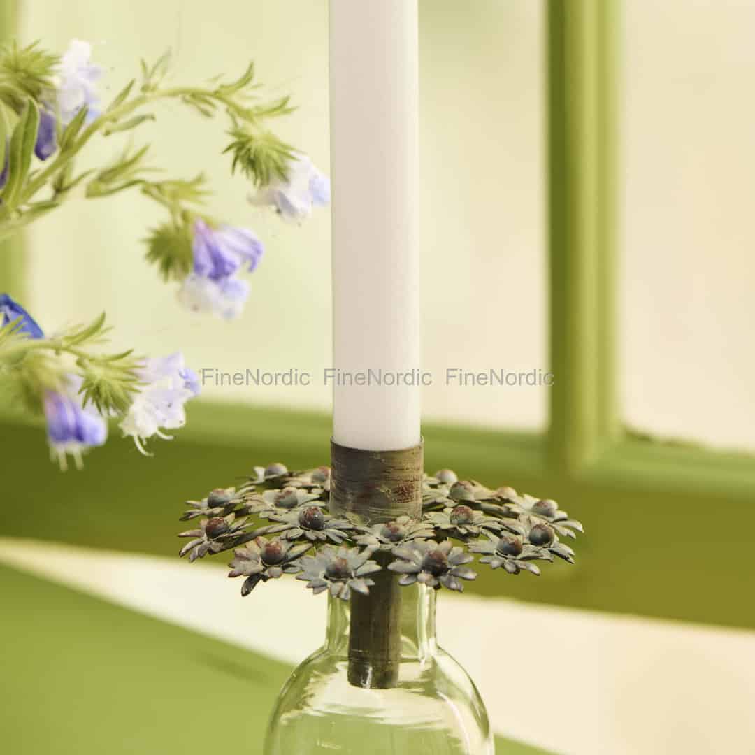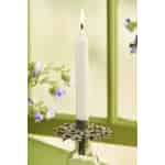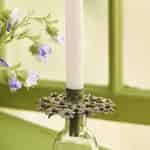Oppdag den stille gleden ved å skape noe nytt fra noe gammelt med denne fantastisk karakterfulle lysestaken fra Ib Laursen. Den er laget av metall med en nøye patinert finish og forteller en historie om rustikk enkelhet. Hver stake er prydet med en delikat botanisk krans, en liten girlander av blomster og bær som ser ut til å være hentet fra en nordisk eng. Dette er ikke bare en lysestake; det er et lite kunstverk designet for å vekke kreativiteten din og bringe et preg av værslitt, romantisk sjarm inn i hjemmet ditt.