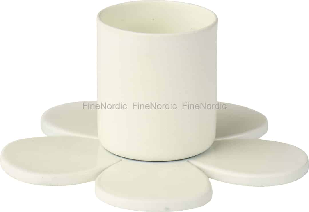 La en hvisken av vår flytte inn i hjemmet ditt med denne sjarmerende lysestaken fra Ib Laursen. Den delikate, blomsterformede basen og den myke, kremgule finishen skaper et fredfullt sted for ditt favorittlys, og sprer en mild og innbydende glød.