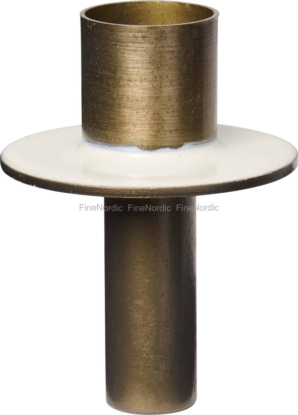 Det finnes en spesiell magi i å finne skjønnhet i det hverdagslige. Ib Laursen fanger denne ånden med sin geniale lysestake, designet for å forvandle enhver glemt flaske til et fyrtårn av varme. Den robuste metallkonstruksjonen, med en tidløs finish i antikk messing, gir en rustikk og jordnær følelse. Den føles solid og ekte, et objekt som forteller en historie om enkel, gjennomtenkt design. Kontrasten mellom metallet og den glatte, blanke emaljen i fargen Butter Cream på dryppskålen er en fryd for øyet, og myker opp karakteren med et hint av mild farge.