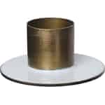 - Varm, børstet metallfinish: Lysholderen har en særegen, børstet metallfinish i en varm messingfarge, som gir den en rustikk, men likevel raffinert karakter som komplementerer det blafrende lysskinnet på en vakker måte.