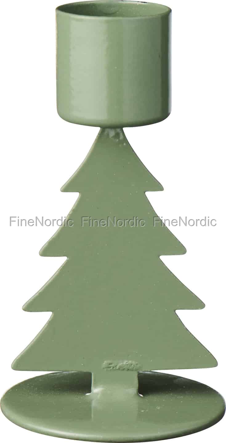Ønsk den stille magien fra en nordisk vinter velkommen inn i hjemmet ditt. Denne sjarmerende lysestaken fra Ib Laursen, med sin enkle juletreform og beroligende mosegrønne farge, er skapt for å gi deg øyeblikk av ren hygge.