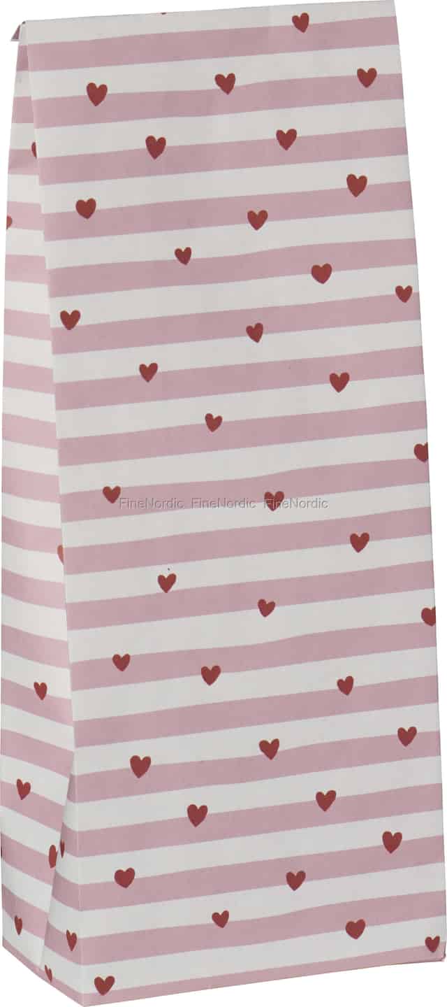Ib Laursen Papirpose - Røde hjerter, lys rosa striper - Medium