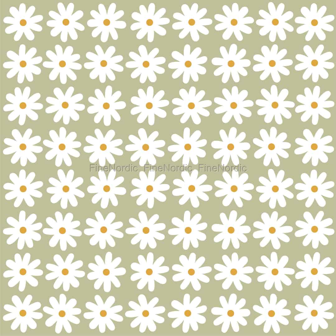 Se for deg en mild bris som bærer med seg duften av markblomster. Disse nydelige papirserviettene fra Ib Laursen fanger denne enkle gleden, med et dryss av glade, hvite prestekrager på en myk, beige bakgrunn, klare til å ønske gjester velkommen til bords.