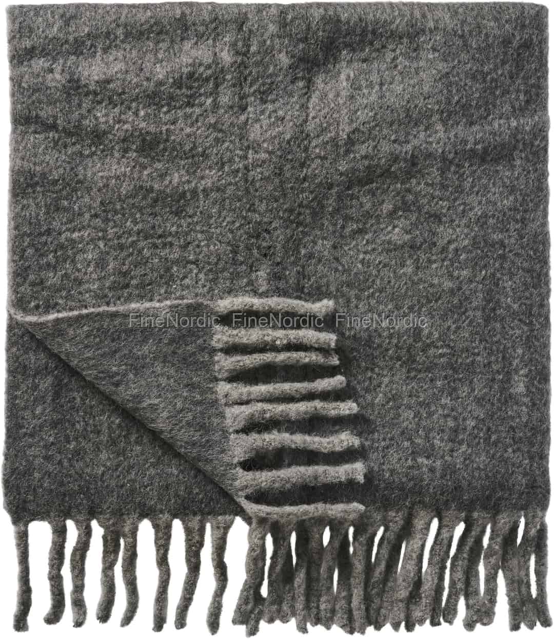 Ib Laursen Pledd - Antrasitt - "Melange" - Lysegrå frynser 130 x 170 cm