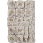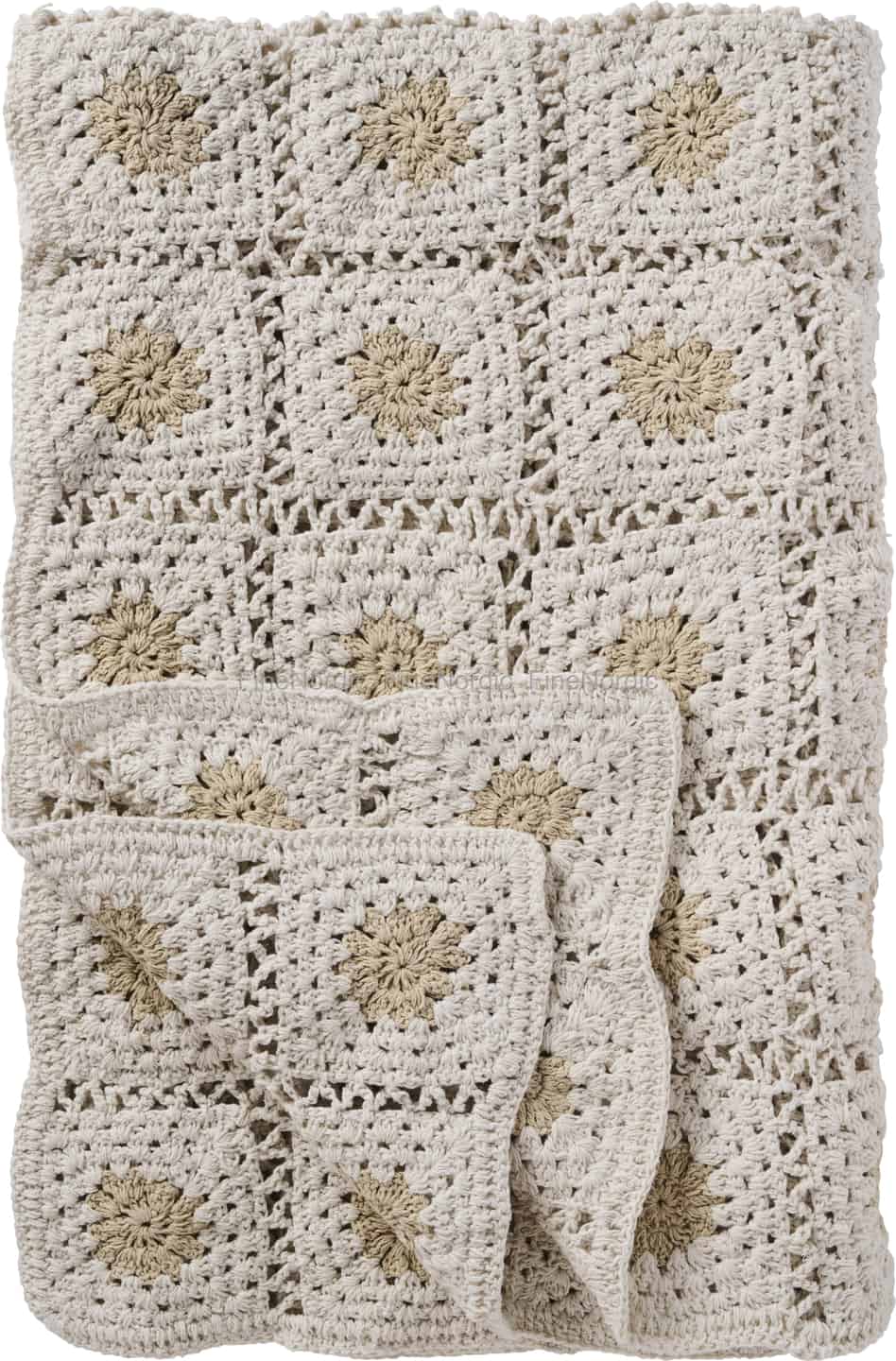 Ib Laursen Pledd - Heklet - Krem - Naturfargede blomster 130 x 170 cm
