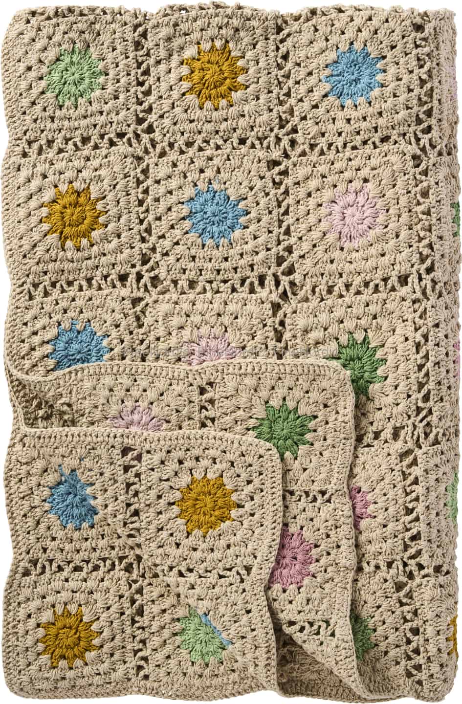 Ib Laursen Pledd - Heklet - Naturfarget - Flerfargede blomster 130 x 170 cm