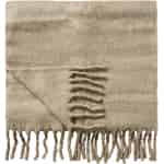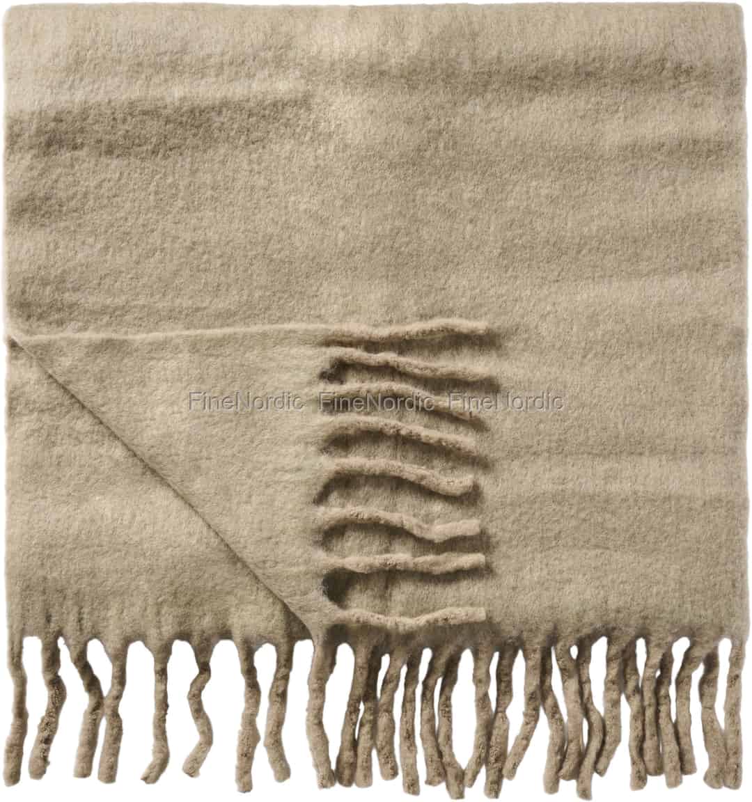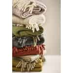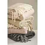 - Sjarmerende håndlagde detaljer: Pleddet er avsluttet med tykke, tvinnede frynser som tilfører et snev av håndverksmessig sjarm og tekstur, og som fremhever dets enkle, men elegante karakter.