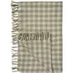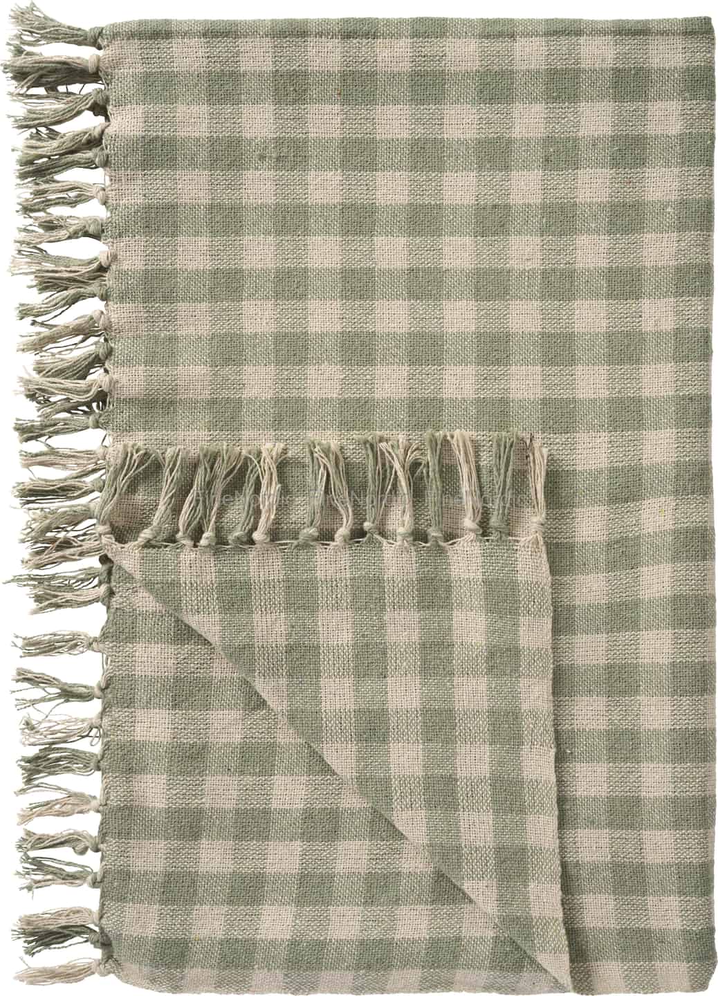 Se for deg en stille ettermiddag, en kopp te i hånden og den milde vekten av dette vakre pleddet over fanget. Vevd av myk bomull i et tidløst mønster med støvgrønne og naturlige ruter, bringer det en følelse av landlig ro inn i hjemmet ditt.