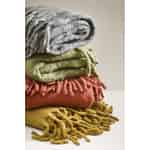 - Klassiske frynsedetaljer: Avsluttet med klassiske, tykke frynser, har dette pleddet en tidløs, rustikk sjarm som tilfører et snev av avslappet eleganse til hjemmeinnredningen din.