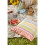La det lystige designet på dette putetrekket fra Ib Laursen ta deg med til en solfylt skandinavisk sommer. Hver stripe forteller en historie om enkle gleder: den myke rosa fargen fra en tidlig soloppgang, det solgule fra smørblomster på engen, og det milde grønne fra nye blader. Laget av en fantastisk vevd bomull, tilfører det ikke bare farge, men også en følelse av autentisk, rustikk sjarm til hjemmet ditt. Det er den perfekte måten å fornye stuen på med et hint av varme og optimisme, og skaper et innbydende sted hvor du og dine kjære kan samles.