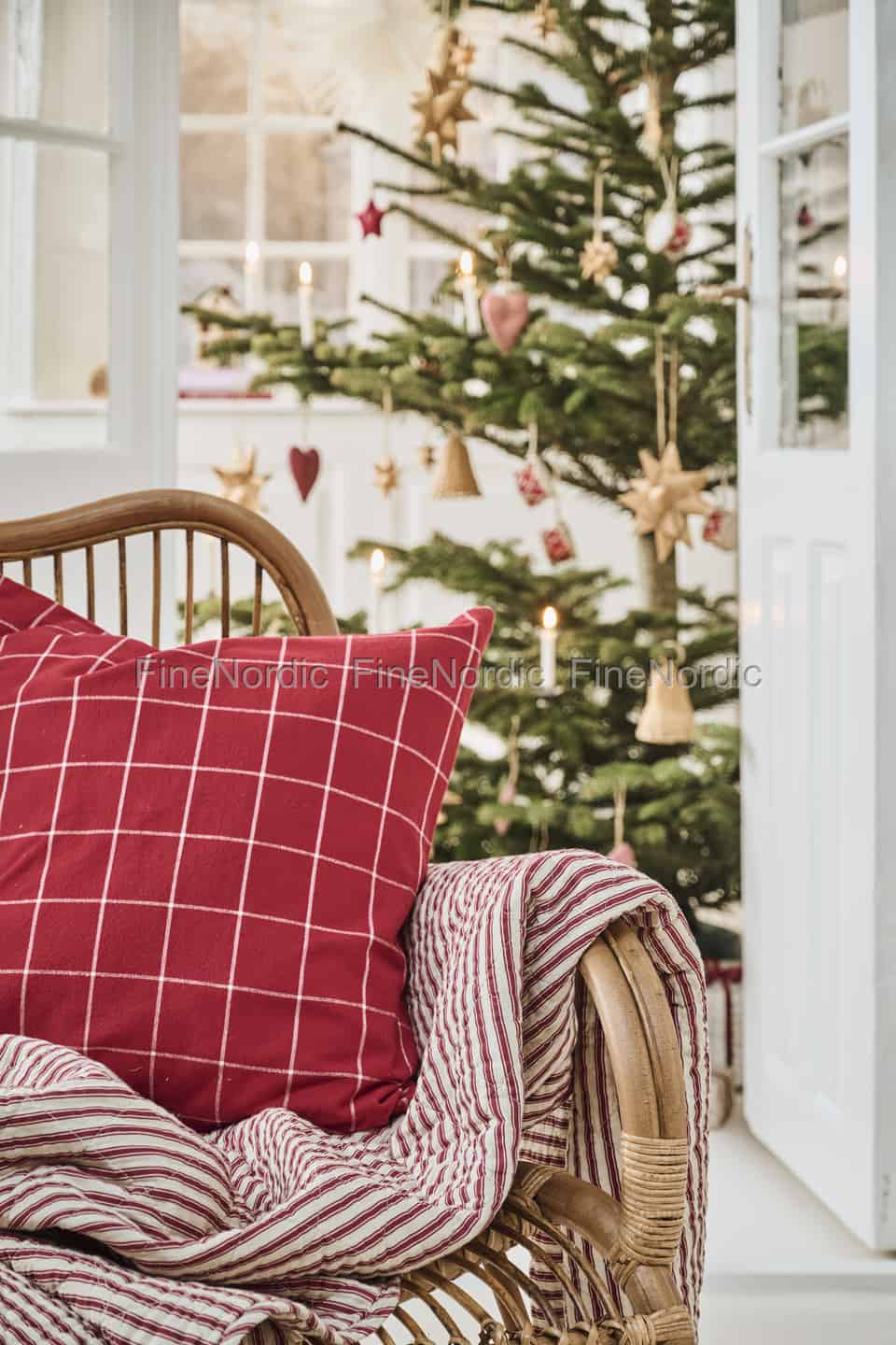 - Skap en innbydende og festlig atmosfære: Den dype rødfargen og det tidløse rutemønsteret tilfører umiddelbart et lag av varme og julestemning, som gjør sofaen eller lenestolen din vidunderlig innbydende.