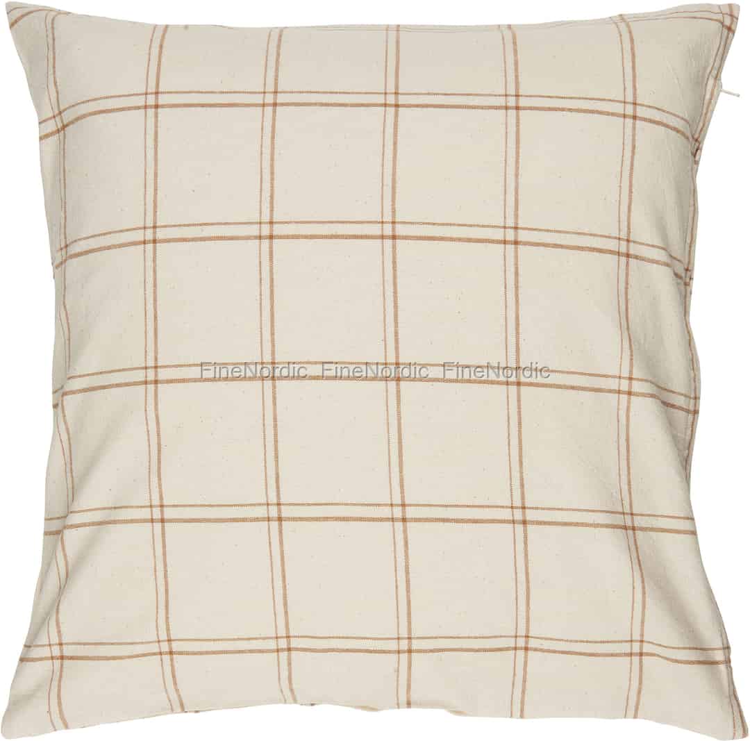Ib Laursen putetrekk Theodor natur med rustikt brunt rutemønster 50 x 50 cm, finn den her på FineNordic.