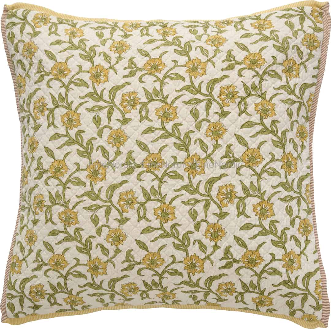 Ib Laursen Putetrekk "Vigga" - Gult og grønt trykk dobbeltvev, nøytral bakside 50 x 50 cm