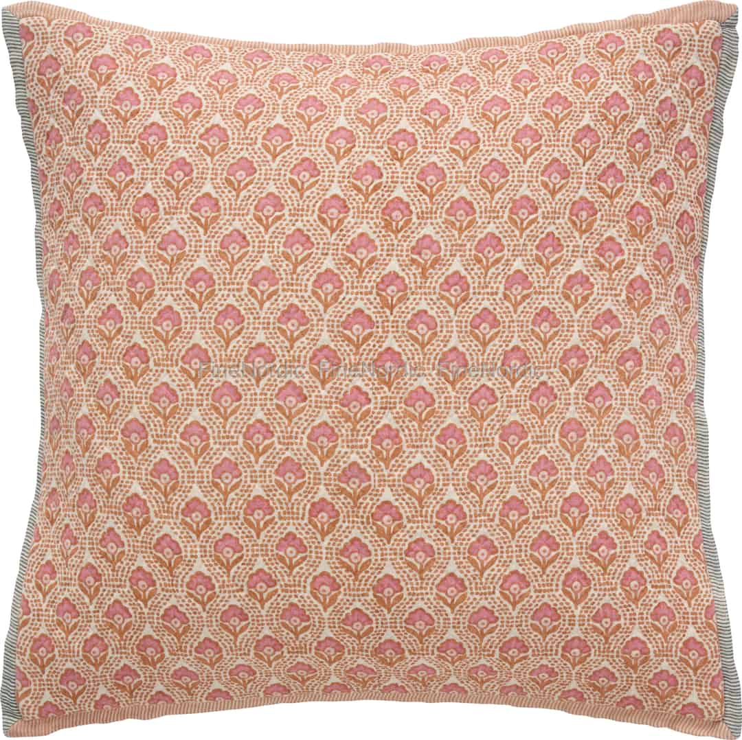Synk ned i komfort med putetrekket Vigga fra Ib Laursen. Det sjarmerende, blokktrykte blomstermønsteret i milde toner av rosa og varm oransje tilfører et herlig preg av rustikk varme til favorittkroken din.