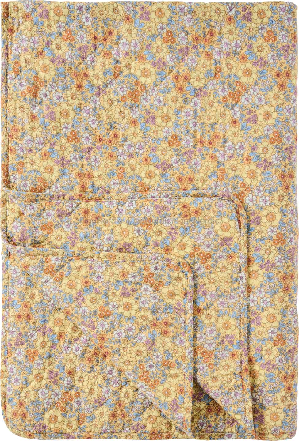Ib Laursen Quilt - Gul - Gule, blå, oransje og lilla blomster 130 x 180 cm