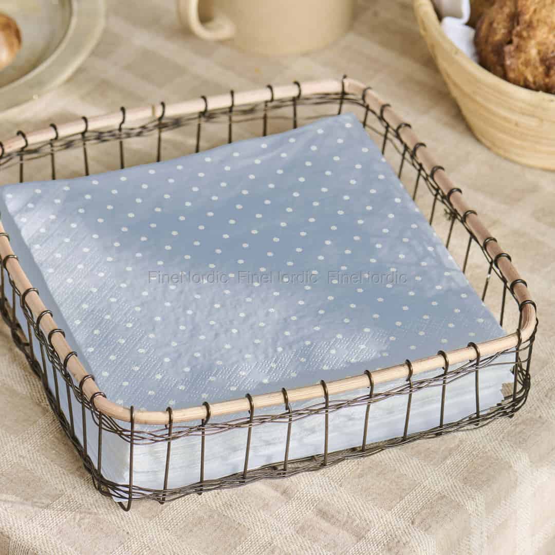 Plasser den midt på frokostbordet, fylt med fargerike servietter for å ønske morgenen velkommen, eller ha den stående på kjøkkenøya for daglig bruk. Med sine generøse mål på 23x23 cm har den god plass til servietter for både familie og gjester. Dette er ikke bare en måte å oppbevare servietter på; det er en invitasjon til å omfavne de enkle, hyggelige øyeblikkene som gjør et hus til et hjem, og den bringer uanstrengt orden og et snev av landlig sjarm til dine daglige rutiner.
