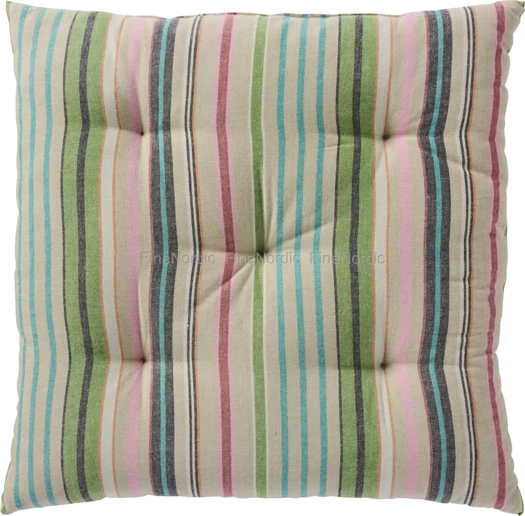 Det er en spesiell magi i å finne et stille sted å slå seg ned, enten det er en rustikk benk i hagen eller en solfylt vinduskarm innendørs. Denne vakre seteputen fra Ib Laursen er designet for nettopp slike øyeblikk. Den herlig myke bomullen og den klassiske, tuftede finishen skaper en innbydende følelse, og oppmuntrer deg til å senke tempoet og nyte de enkle gledene. De sjarmerende, flerfargede stripene føles som et kjært minne om somre som har vært, og tilfører et subtilt preg av personlighet og varme uansett hvor du plasserer den.