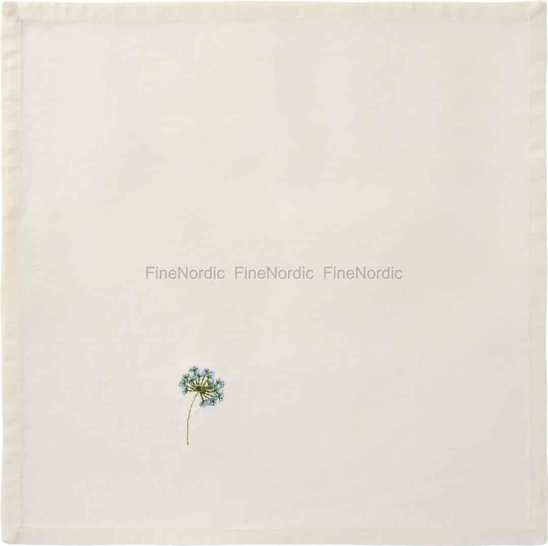 Ib Laursen Stofserviett "Flora" med blå skjermblomst - Smørkrem