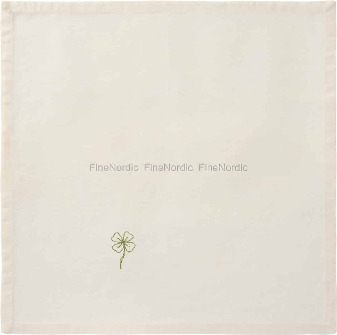 Brett ut litt lykke ved ditt neste måltid. Denne sjarmerende stofservietten fra Ib Laursen, i en varm smørkremfarge, er laget av myk bomull og har en enslig, delikat brodert firkløver – et stille ønske om hell og lykke.
