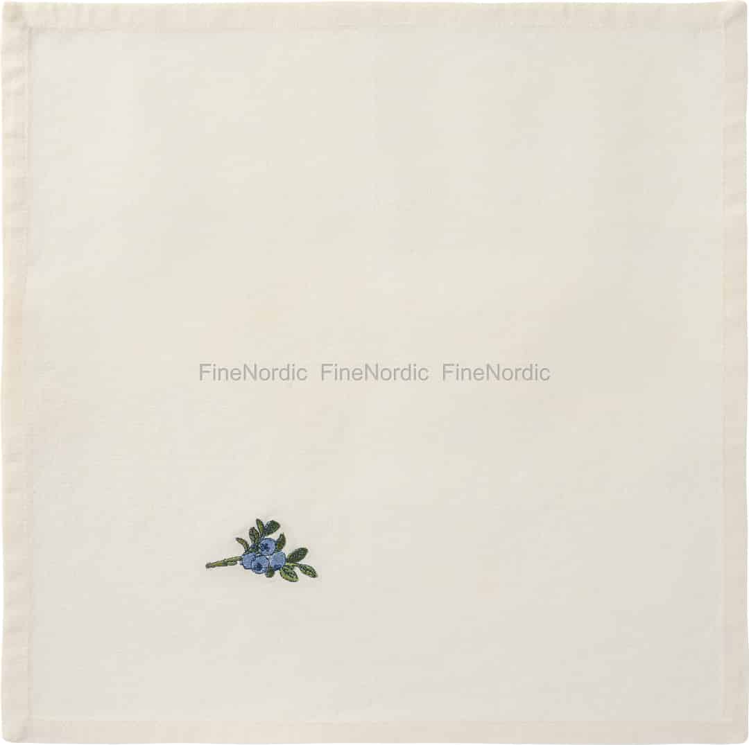 Se for deg en mild sommerbris og den enkle gleden ved et måltid delt med de du er glad i. Denne vakre stofservietten fra Ib Laursen fanger nettopp den følelsen med sin delikate, broderte blåbærkvist, og tilfører et snev av naturens sjarm til bordet ditt.