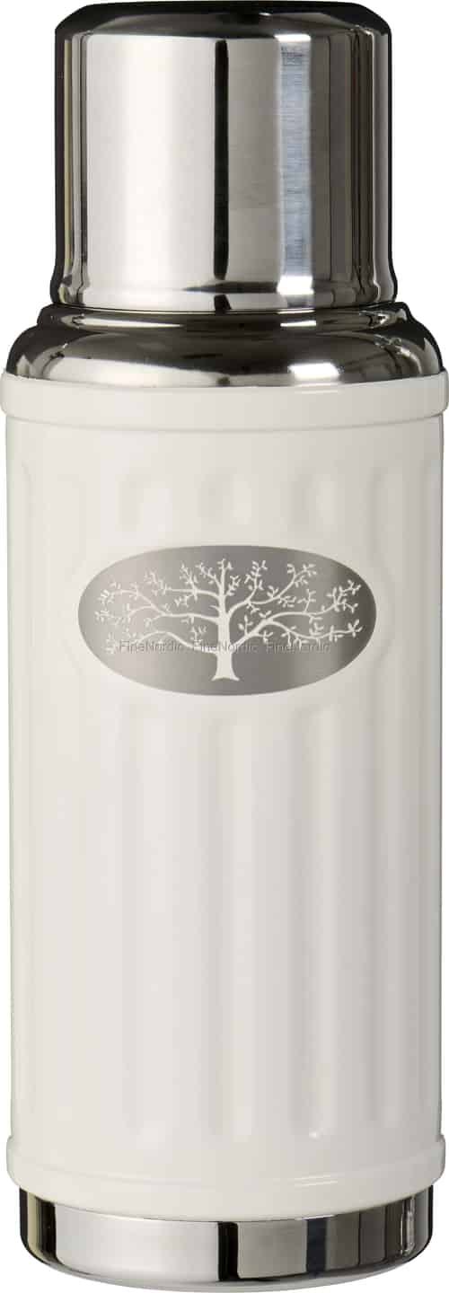 Det er en spesiell form for kos i det å ha med seg en varm drikke, en liten luksus som kan lyse opp enhver dag. Denne termoflasken fra Ib Laursen fanger den følelsen perfekt. Den milde, kremfargede nyansen og den taktile, rillede overflaten føles fantastisk i hendene, mens de polerte metalldetaljene tilfører et preg av diskré eleganse. Det delikate, etsede treet på den børstede metallplaketten er en stille påminnelse om naturens enkle skjønnhet, og gjør hver slurk til et bevisst øyeblikk.