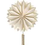 - Et intrikat, skulpturelt design: Stjernen er laget av vakkert, off-white papir, og de komplekse foldene skaper et fantastisk spill av lys og skygge som gir treet ditt dybde og tekstur.
