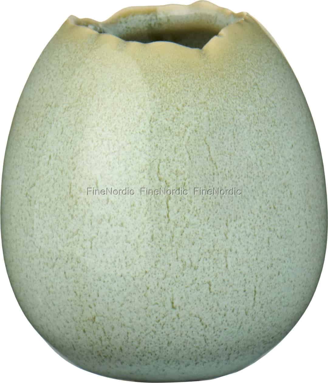 I den nordiske designverdenen finnes det en dyp verdsettelse for livets små, stille øyeblikk. Denne vakre, lille vasen fra Ib Laursen er en perfekt legemliggjøring av den filosofien. Den sjarmerende eggeformen, laget av keramikk, hviler behagelig i hånden din, og den teksturerte grønne glasuren minner om et delikat fugleegg funnet i gresset. Den krever ingen storslått bukett; i stedet ber den om en enkelt, verdsatt stilk – en enslig hagerose, en kvist lavendel, eller en munter prestekrage plukket av et barn.