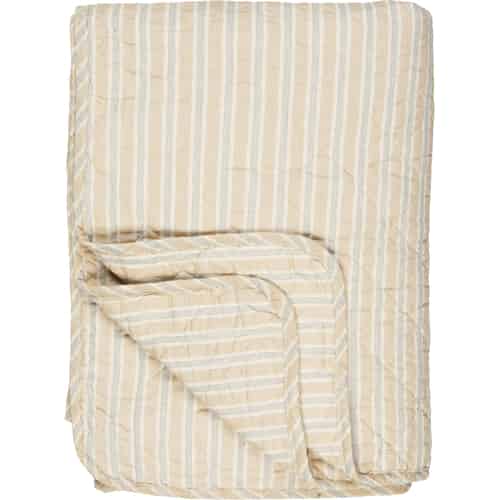 Ib Laursen Quilt Natur med Blå og Hvite Striper 130 x 180 cm