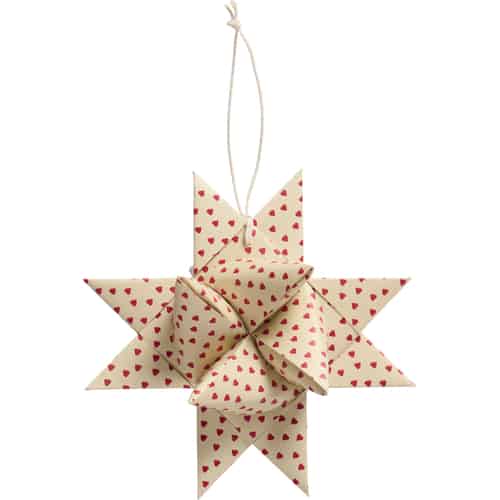 Ib Laursen Flettet stjerne til oppheng - liten, med røde hjerter