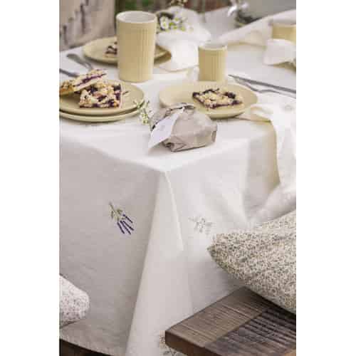Ib Laursen Duk Flora Butter Cream med Broderte Blomster 150 x 150 cm