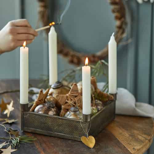 Ib Laursen Adventlysestake til 4 x 2,2 cm Stearinlys Rund Stillenat Messing