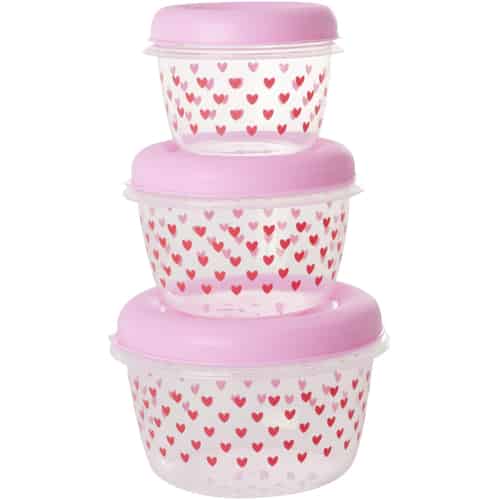 Rice Plast Matbokser - Rund Rosa - Hjerter - Sett med 3 På lager