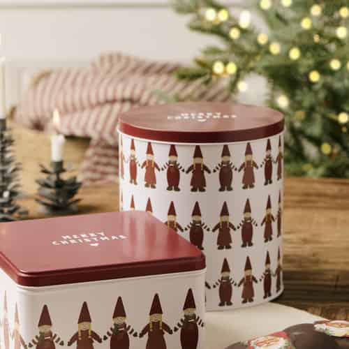Ib Laursen Kakeboks - med nisser hånd i hånd - Høy - Rund På lager