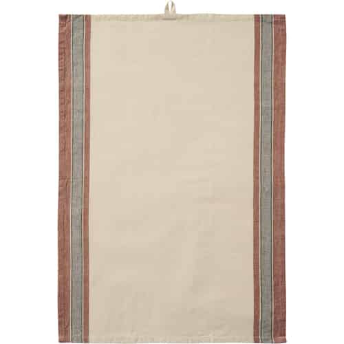 Ib Laursen Kjøkkenhåndkle Lea Naturfarget med Røde Tynne Striper På lager