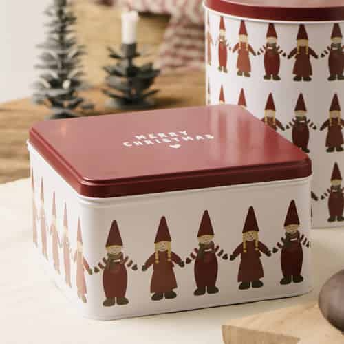 Ib Laursen Kakeboks - med nisser hånd i hånd - Høy - Rund På lager