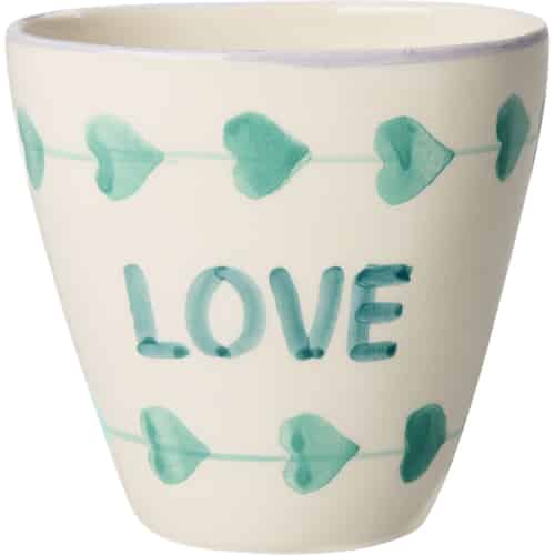 Rice Keramikk oval kopp - Håndmalt grønn "LOVE" På lager