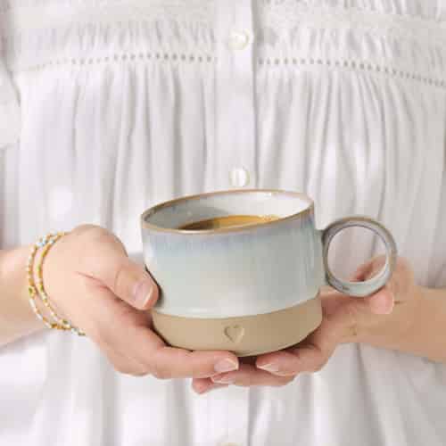 Ib Laursen Krus med Håndtak - Hjerte - Matt brun leire med lyseblå kant På lager