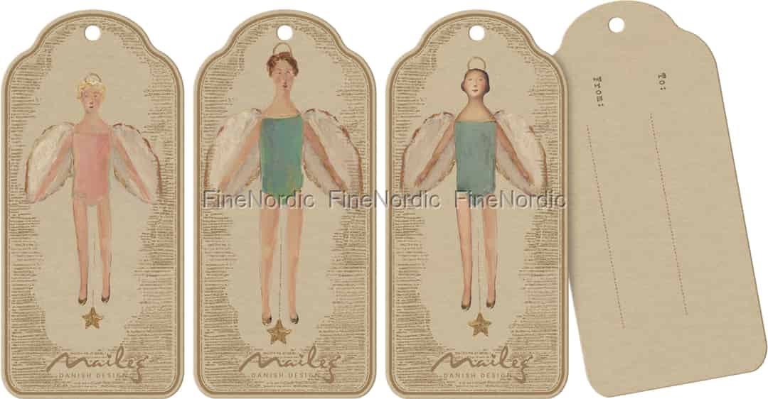 Se for deg gleden når en du er glad i mottar en gave pyntet med en av disse fortryllende engel-gavelappene. Fra Mailegs finurlige verden er hver gavelapp et lite kunstverk som lover en historie i gaven den følger med.