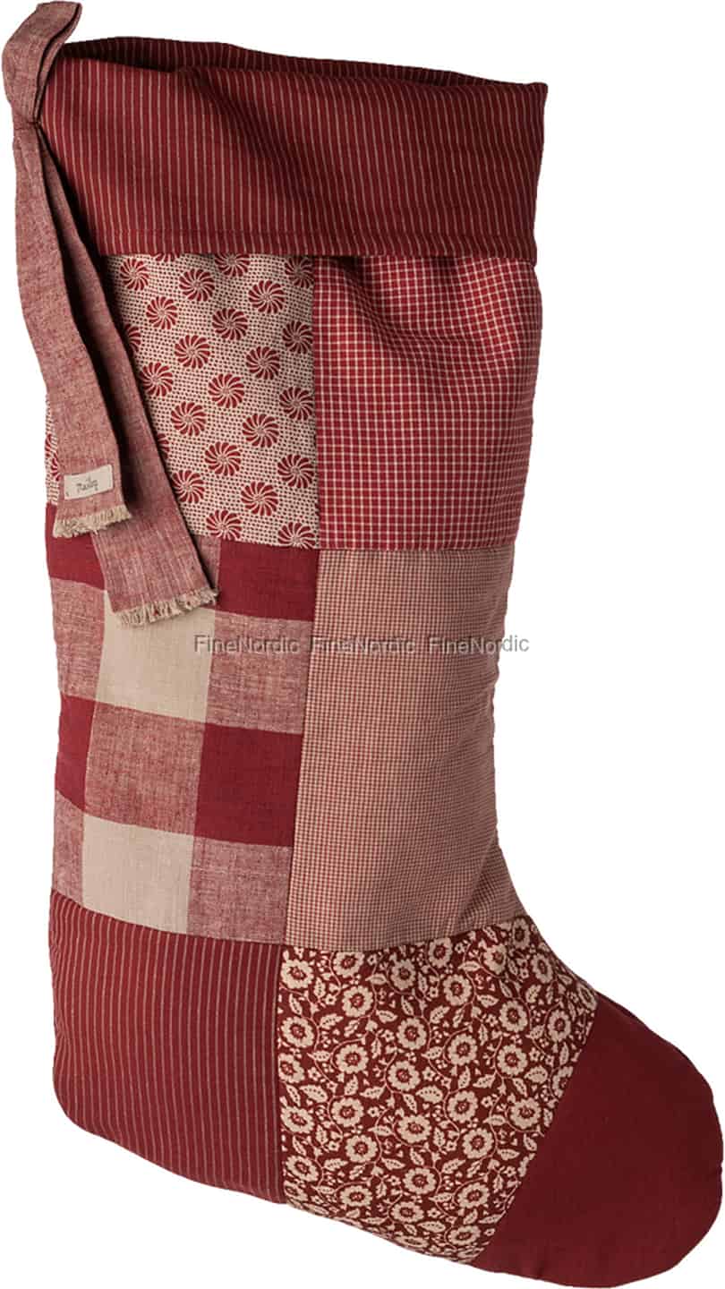 - Et vev av julemønstre: Julestrømpen er laget av en mosaikk av nøye utvalgte bomullsstoffer og har sjarmerende blomster-, rute- og stripemønstre som gir den et helt unikt, håndlaget preg på peishyllen.