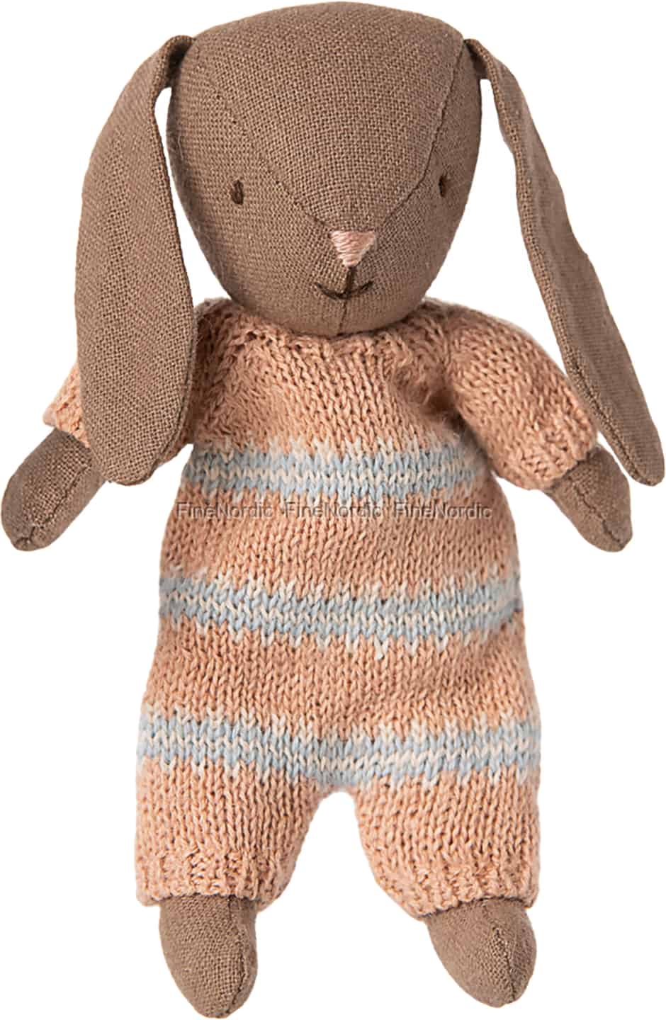 Maileg Kanin Micro - Brun - Støvrosa strikket drakt - med magnetiske hender