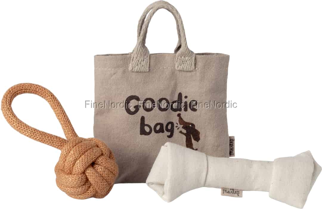 - Inspirerer til timevis med lekne fortellinger: Dette herlige tredelte settet, som inkluderer en veske, et bein og en tauleke, gir alle ingrediensene for utallige fantasifulle eventyr med dine Maileg-venner og deres kjære kjæledyr.