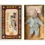 Denne lille musen er skapt for å bli elsket. De magnetiske hendene hans er perfekte for å holde fast i små skatter eller styret på en trehjulssykkel, og gir liv til barnets fantasifulle scener. Som en del av den kjære Maileg-familien er han mer enn bare et leketøy; han er et minne for livet, klar til å være hovedpersonen i utallige barndomsfortellinger og kjære minner i mange år fremover.